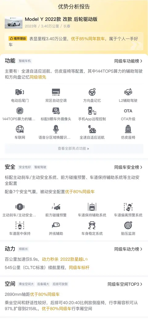 综上所述的新车含税价、用车成本、市场行情、优势分析、同款比价等数据仅供参考。在配置部分,因为二手车非标品,车辆可能会存在配置改装的情况,具体车况信息需要线下结合车辆实际情况进行综合参考。